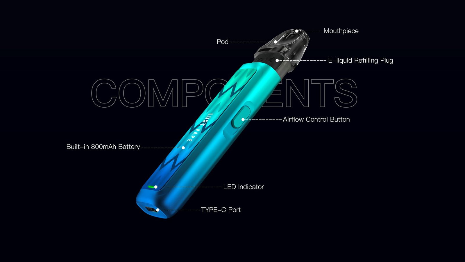 За щільність пари та смакопередачу відповідають змінні картриджі з магнітним конектором, зручним мундштуком, об’ємом 2.5 мл та вбудованим випарником на 0.8 Ом (комплектний) або 1 Ом